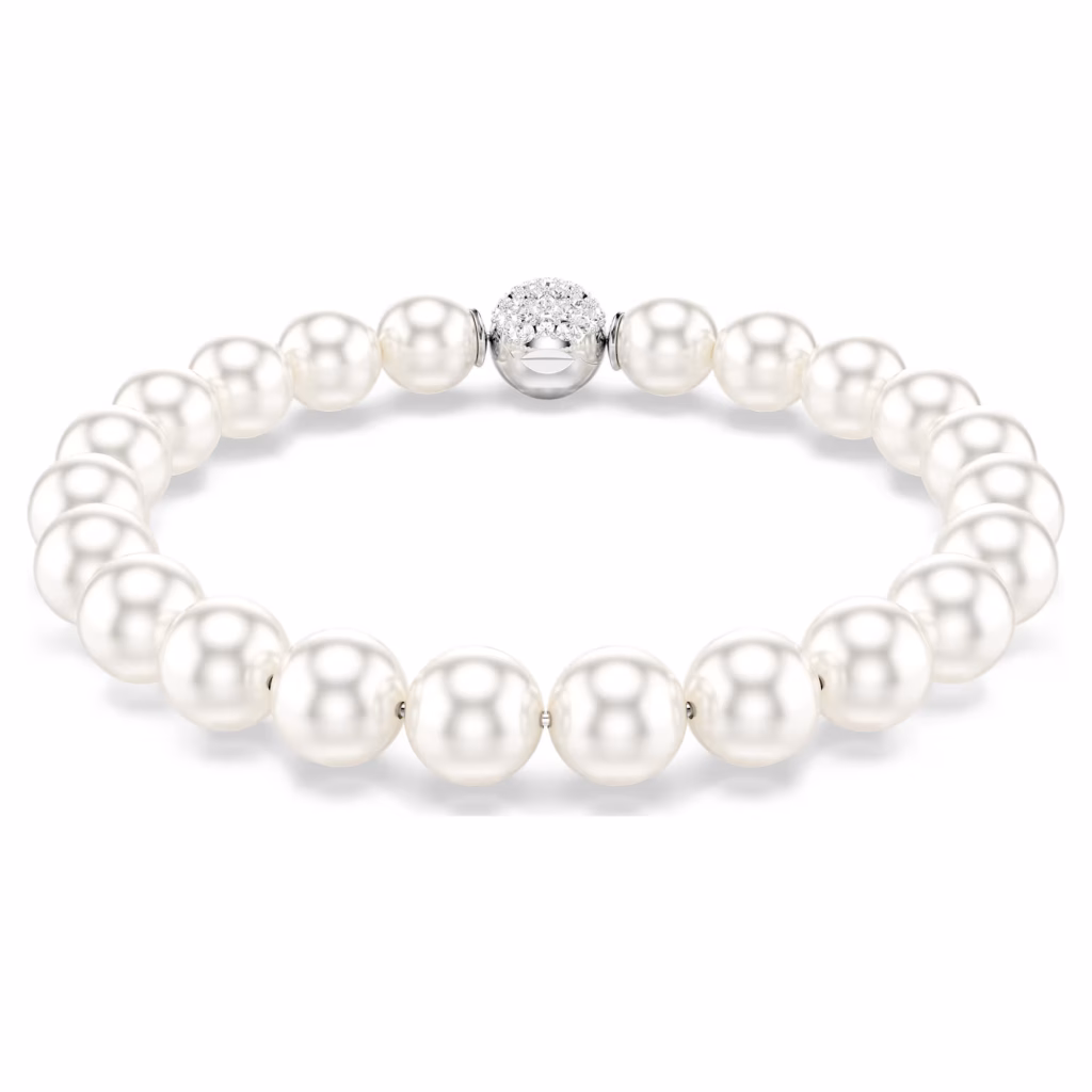 Кристаллический жемчуг, Круглая огранка, Белый, Покрытие родием