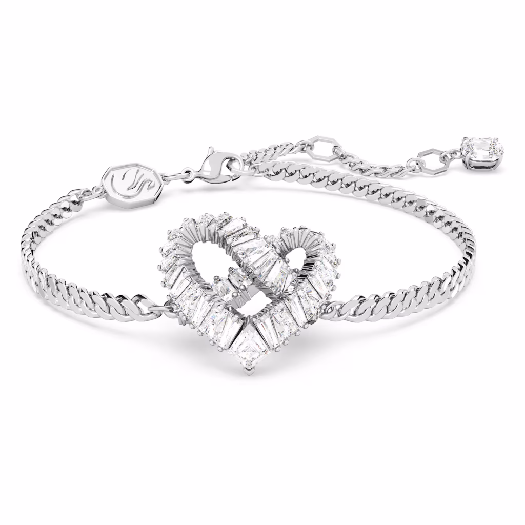 Огранка «багет», Сердце, Маленький, Белый, Покрытие родием