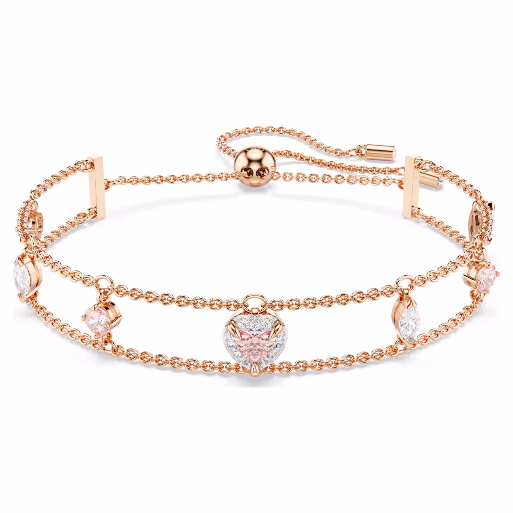 Разноцветные огранки, Сердце, Розовый, Позолота розового цвета