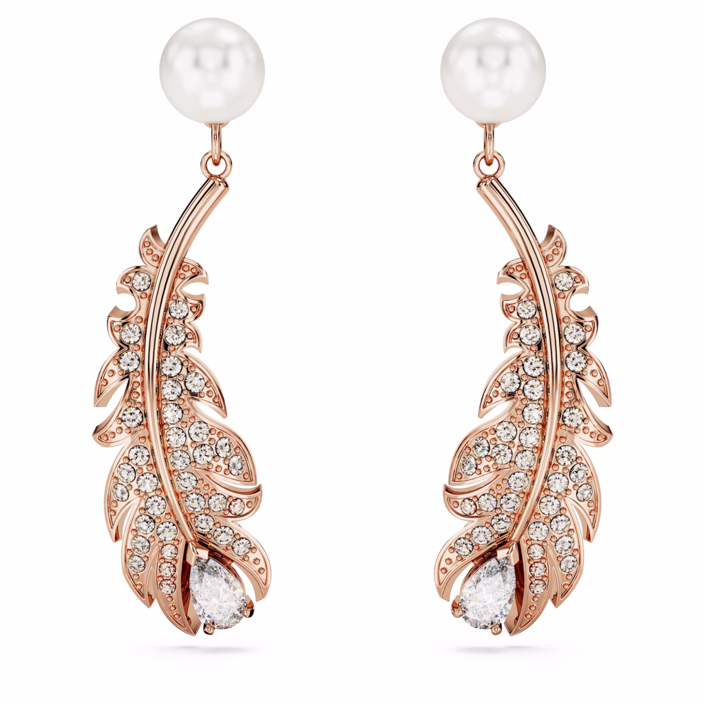Жемчужина, комбинированная огранка, перо, белый цвет, покрытие из 18-каратного розового золота.