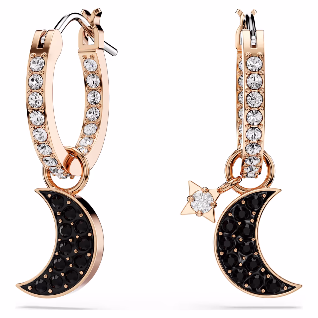 Набор (2), Луна и звезда, Черный, покрытие под розовое золото
