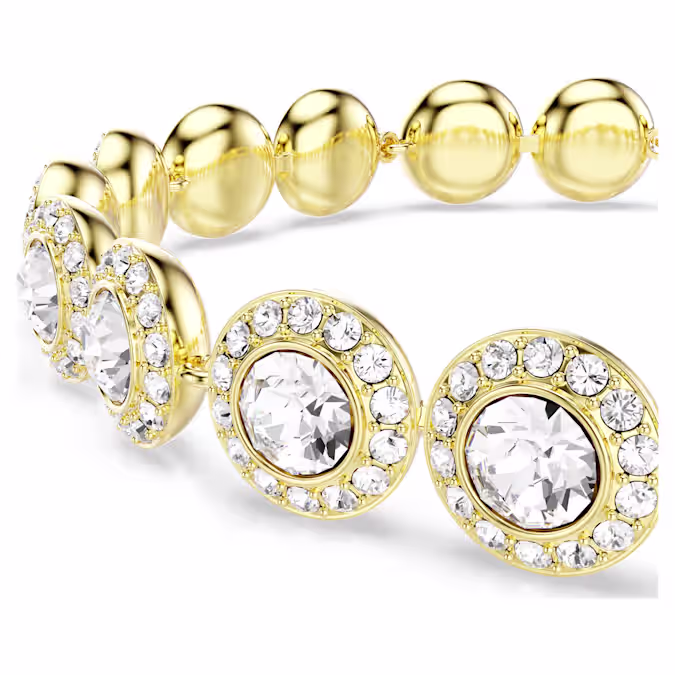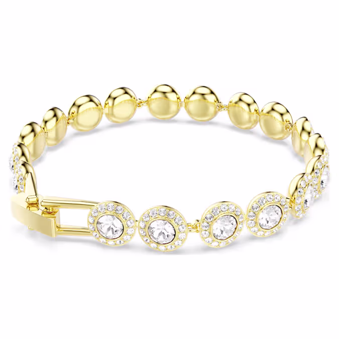 Чистая, вечная изысканность. Этот браслет Tennis с золотым покрытием имеет ряд круглых прозрачных кристаллов, каждый из которых обрамлен сверкающим прозрачным кристальным паве. Идеально сочетаясь с другими изделиями из семейства Una Angelic, он станет великолепным подарком.