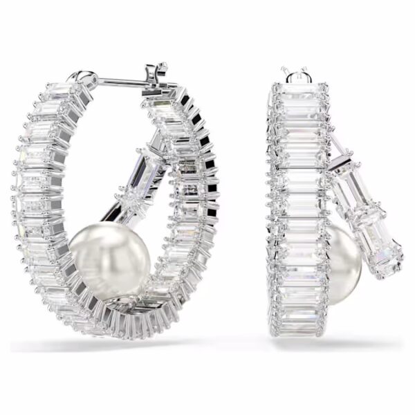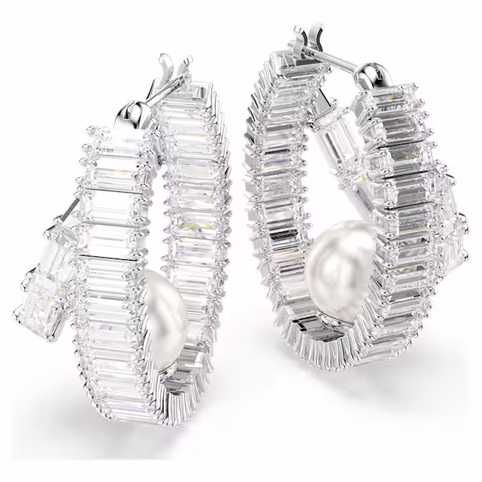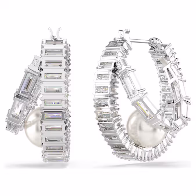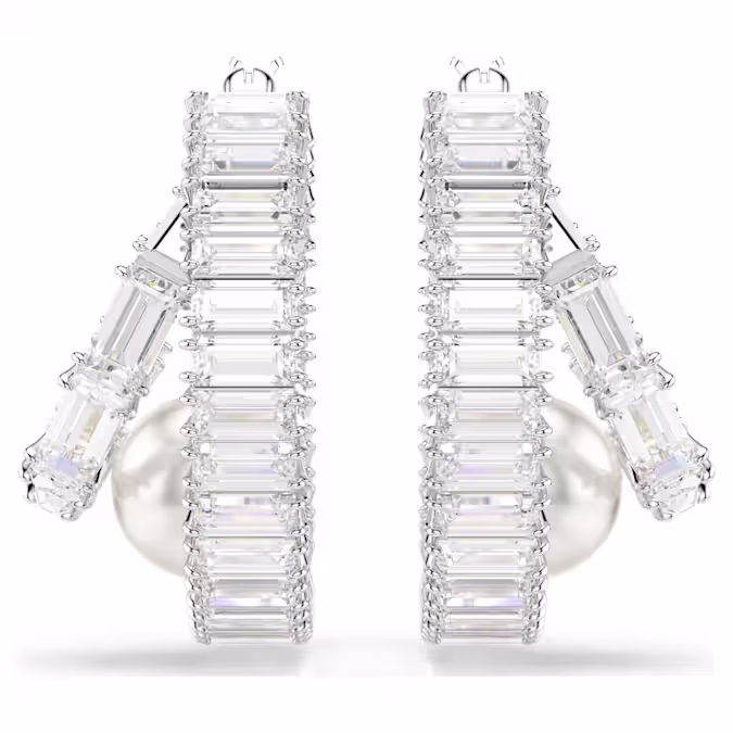 Примите современную интерпретацию классического стиля колец. Каждая из этих ярких сережек-проколов покрыта родием и полностью инкрустирована цирконами Swarovski багетной огранки. Затем в основание каждого кольца помещается одна кристальная жемчужина Swarovski, чтобы вывести образ на новый уровень роскоши. Сочетайте эти серьги с другими подходящими украшениями, чтобы создать собственные выразительные комбинации.