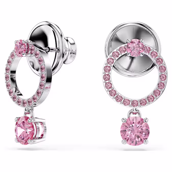 Эти красочные проколотые серьги простые, но блестящие. Каждое изделие представляет собой круглый розовый кристалл, свисающий с небольшого кольца, которое само по себе красиво украшено мерцающим розовым паве. Подвешенные элементы разработаны так, чтобы двигаться, когда вы поворачиваете голову, отражая свет во всех направлениях. Идеальный способ сделать свой стиль сияющим.