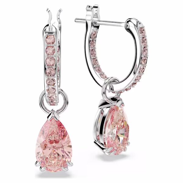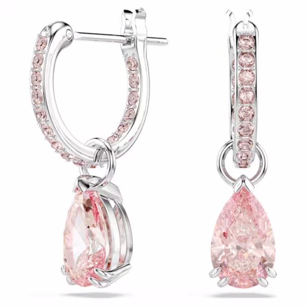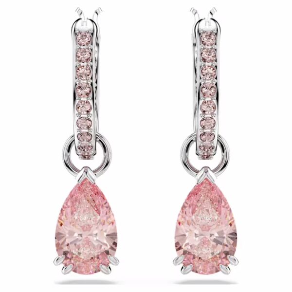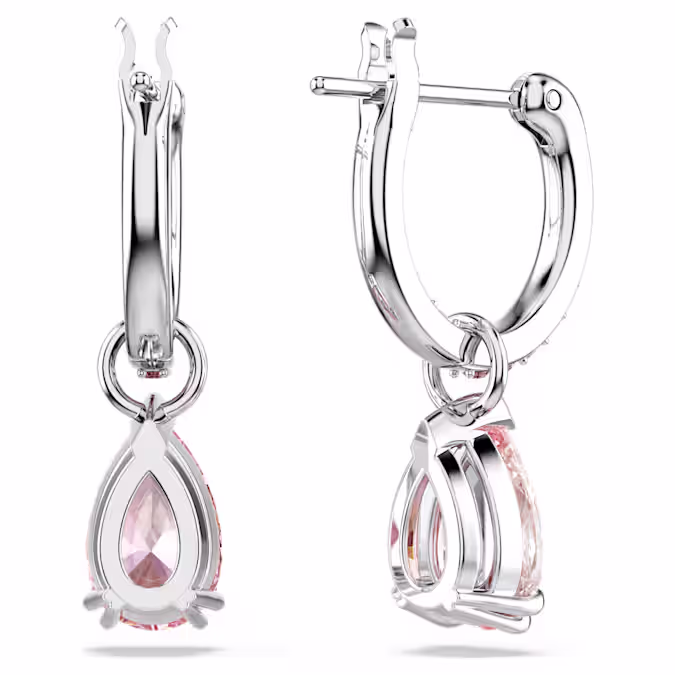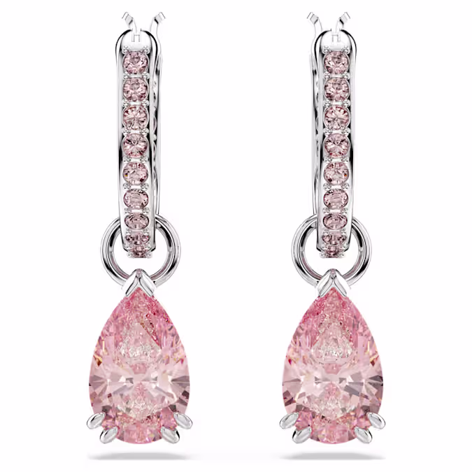 Эти серьги, созданные для того, чтобы ловить свет под любым углом, станут вашим новым фаворитом в стиле. Каждое изделие имеет розовый кристалл грушевидной огранки, который подвешен на покрытых родием кольцах, украшенных ослепительным розовым паве. Носите их с собранными в пучок волосами вместе с другими изделиями из того же семейства.