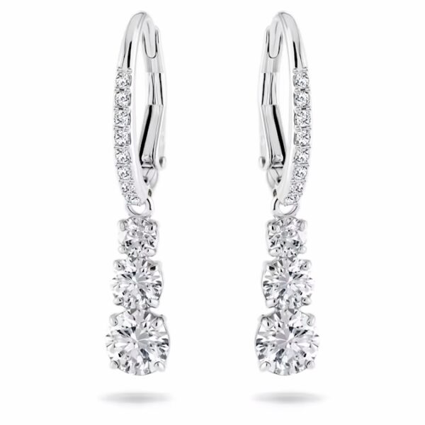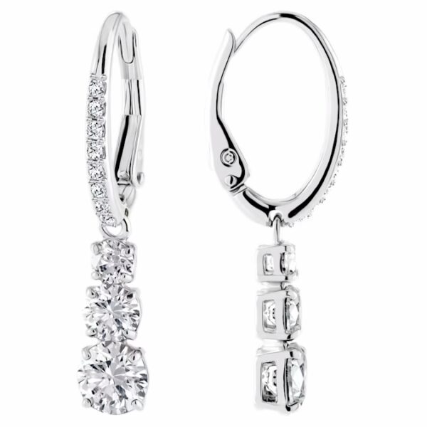 По своей природе вечная любовь должна иметь прошлое, настоящее и будущее, и эта пара потрясающих сережек была задумана с учетом этой романтической концепции. Трио прозрачных кристаллов украшено паве и родиевым покрытием в этом сверкающем дизайне. Неподвластные времени элегантные, они станут драгоценным подарком на память. Доступны подходящие ожерелье и кольцо.