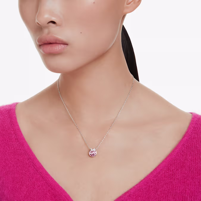 Этот романтичный кулон привлекает внимание благодаря центральному розовому кристаллу, покрытому родием. Росчерк мерцающего паве добавляет дополнительный слой красоты, а нежная цепочка излучает чистую элегантность. Носите его вместе с подходящими серьгами для создания чудесного сочетания.