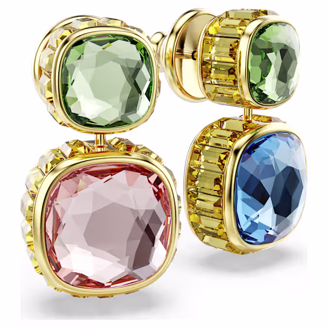 Эти серьги Chroma Twist с разными цветами с каждой стороны удивительно универсальны. Каждое позолоченное изделие крепится к уху с помощью кристалла Swarovski ReCreated™ зеленого цвета. Ниже двусторонний дизайн означает, что вы можете либо выставить кристалл Swarovski ReCreated™ синего цвета, либо яркий кристалл розового цвета. Выбор за вами. Создавайте игривые сочетания с другими украшениями из этой коллекции и позвольте своей радостной стороне сиять. Украшения Chroma Twist содержат не менее 50% кристаллов Swarovski ReCreated™, и это наша первая коллекция, разработанная с учетом круглости.