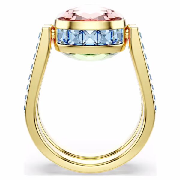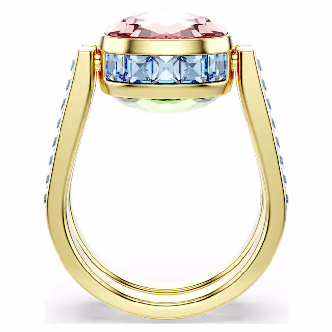 Меняйте цвета в соответствии с вашим настроением с помощью этого универсального кольца Chroma Twist. Позолоченная шинка имеет зеленый кристалл Swarovski ReCreated™ в центре, который можно легко повернуть для розового кристалла с другой стороны. Более мелкие кристаллы Swarovski ReCreated™ синего цвета также размещены по всему дизайну. Будьте игривы с этим радостным коктейльным кольцом и встречайте каждый день в том цвете, который вы чувствуете. Украшения Chroma Twist содержат не менее 50% кристаллов Swarovski ReCreated™, и это наша первая коллекция, разработанная с учетом круговой концепции.