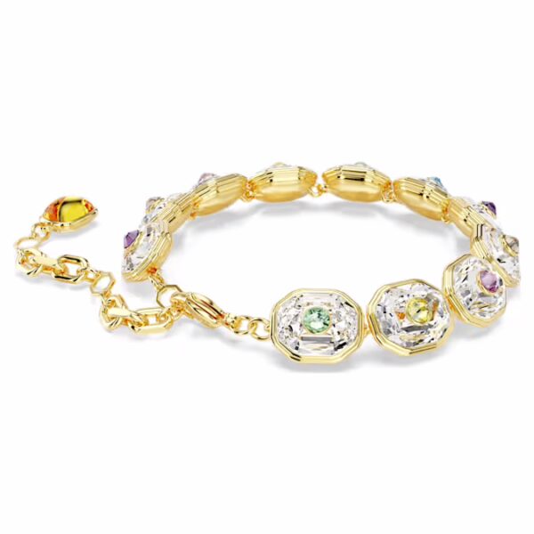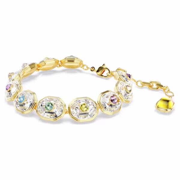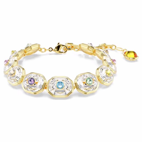 Зарядите свой образ красочным сиянием. Этот браслет с золотым покрытием имеет разноцветные кристаллы круглой огранки, наложенные поверх прозрачных кристаллов восьмиугольной огранки большего размера. Энергичный, игривый и смелый, браслет прекрасно смотрится сам по себе или в сочетании с подходящим ожерельем такого же сияния.