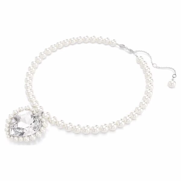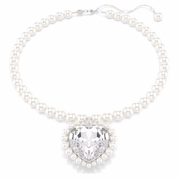 Это ультрагламурное колье, созданное с помощью уникального ноу-хау Swarovski, символизирует роскошь и свет. В этом дизайне с родиевым покрытием для достижения максимального эффекта используются хрустальные жемчужины Сваровски, расположенные по всему ожерелью и, в различных размерах, вокруг центрального кристалла в форме сердца. Красиво изготовленное украшение, которое можно подарить себе или в качестве радостного подарка близкому человеку.