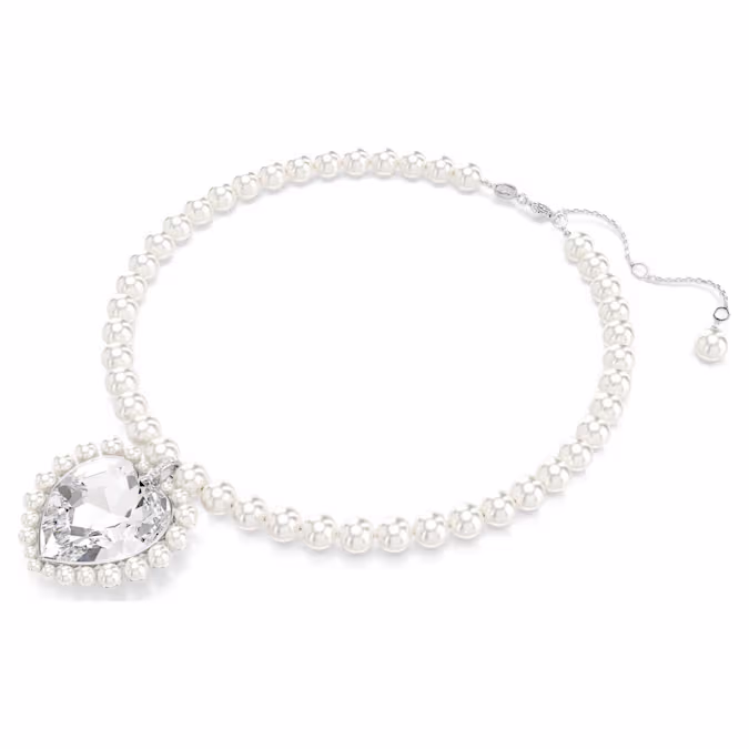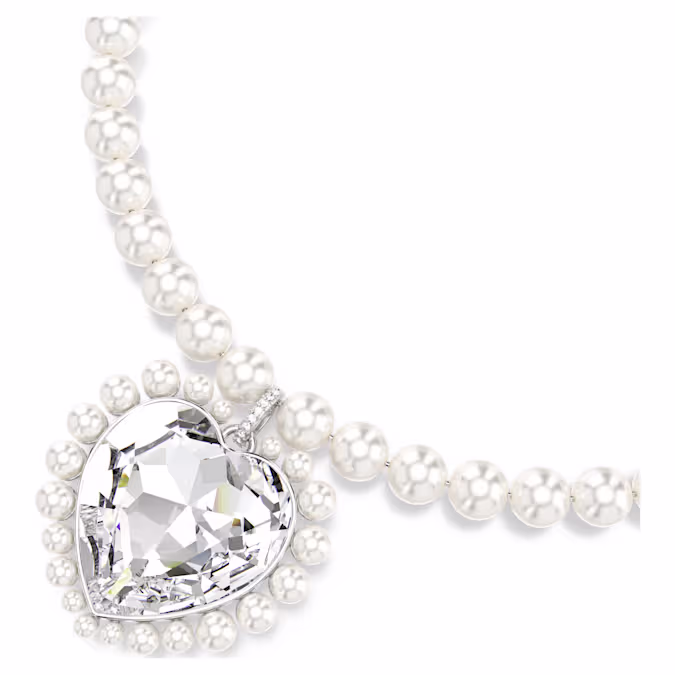 Хрустальный жемчуг, Огранка «Сердце», Сердце, Белый, Металл с родиевым покрытием