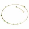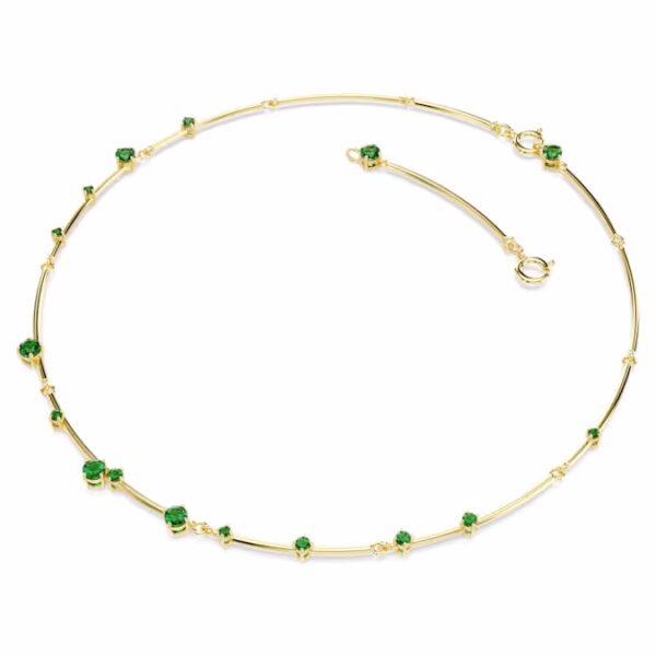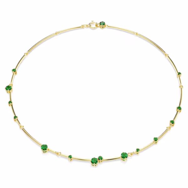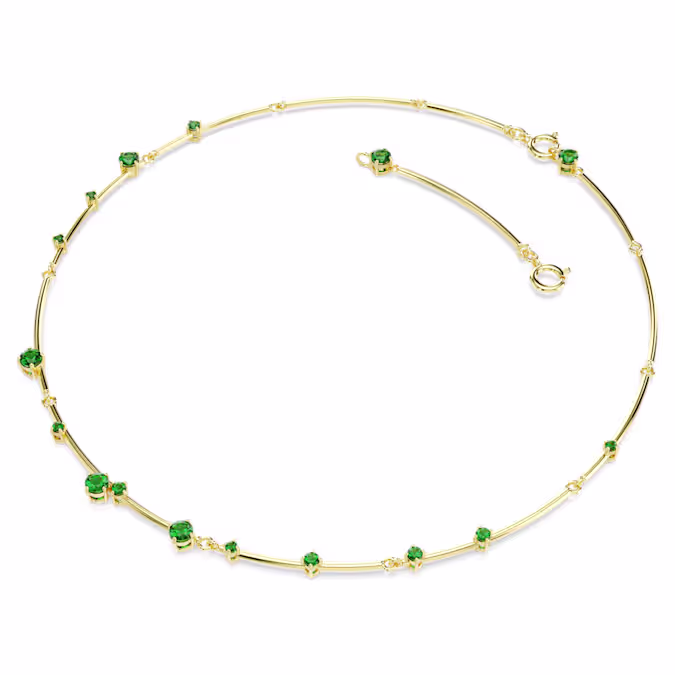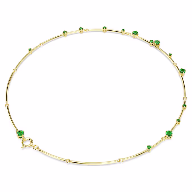Это ожерелье, вдохновленное чудесами космоса, придаст вашему стилю блеск и волшебство. Это потрясающее украшение с застежкой-карабином представляет собой ряд звеньев с золотым покрытием, украшенных округлыми зелеными камнями в изысканной зубчатой закрепке, разбросанной по всей длине изделия. Идеальное украшение для Рамадана, которое можно носить, например, с подходящим браслетом или серьгами.