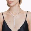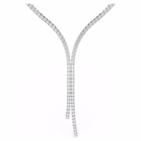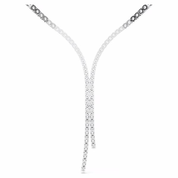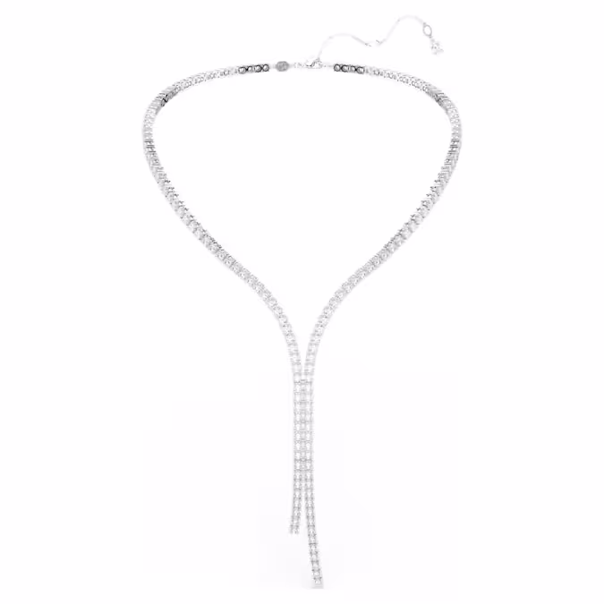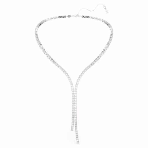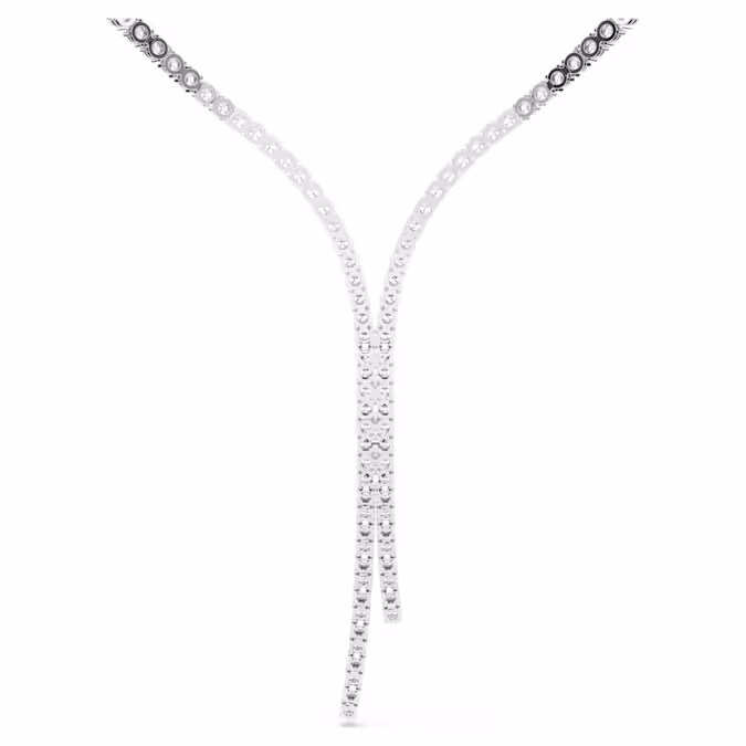 Знаменитый стиль Matrix Tennis от Swarovski дополняется этим сверкающим Y-образным ожерельем. Это украшение с родиевым покрытием оснащено застежкой-карабином и обвивает шею эффектным рядом круглых фианитов Swarovski, каждый из которых бесцветный и оснащен зубцами. Исключительное ювелирное украшение с интенсивным блеском, которое станет идеальным завершающим штрихом для любого вашего наряда.