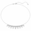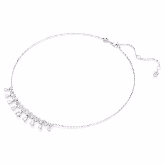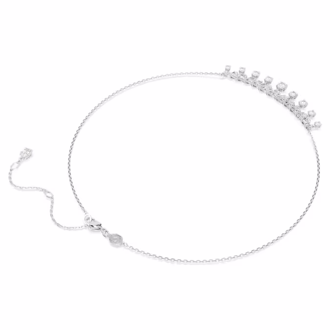 Украсьте свой образ этим сияющим ожерельем, вдохновленным ледниками и их тайнами. Покрытый родием дизайн украшен бесцветными цирконами Swarovski в форме воздушных змеев, каждый из которых украшен круглым цирконием Swarovski, подвешенным ниже. Это зимнее изделие с застежкой-карабином является прекрасным примером наследия Swarovski, точной огранки и уникального мастерства игры со светом. Носите его с соответствующей парой серег-снежинок из серии Idyllia, чтобы создать образ, который будет одновременно гипнотическим и гармоничным.