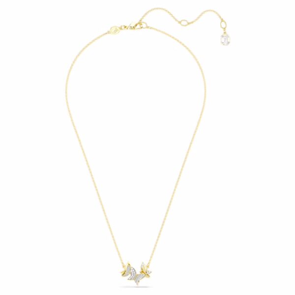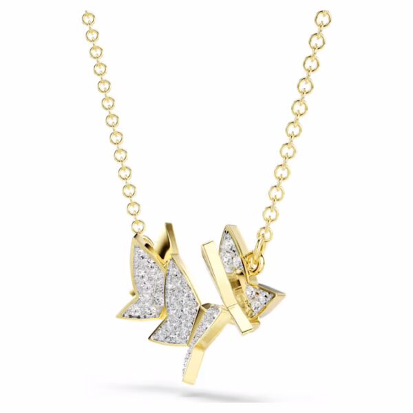Это изящное ожерелье станет элегантным повседневным выбором и быстро станет неотъемлемой частью гардероба. Он украшен узорами в виде бабочек, выложенными сверкающей плиткой, и подвешен на позолоченной цепочке. Это творение идеально дополнит ваши белые футболки, кашемировые свитера, джинсы или вечерние наряды: подойдет все!