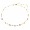 Это ожерелье от семейства Imber позволит вам создавать повседневные образы, которые будут одновременно радостными и яркими. Подвешенное на позолоченной цепочке, оно украшено сверкающими металлическими каплями и мерцающими кристаллами круглой огранки в куполообразной оправе. Уникальные фианиты Swarovski также подчеркивают удлинение, придавая ему дополнительную нотку роскоши. Сочетайте эту вещь с другими вещами, чтобы создавать уникальные стильные комбинации.