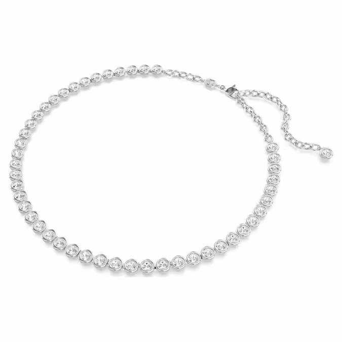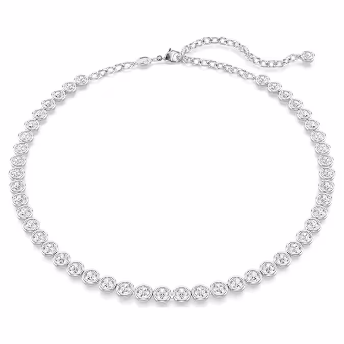 Это ожерелье Imber Tennis, выполненное в нежных, классических тонах, дополнит любой ваш повседневный образ. Покрытый родием дизайн отличается целым рядом кристаллов круглой огранки в куполообразной оправе. Идеальное украшение, которое добавит вашему стилю немного волшебства и блеска.
