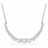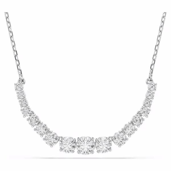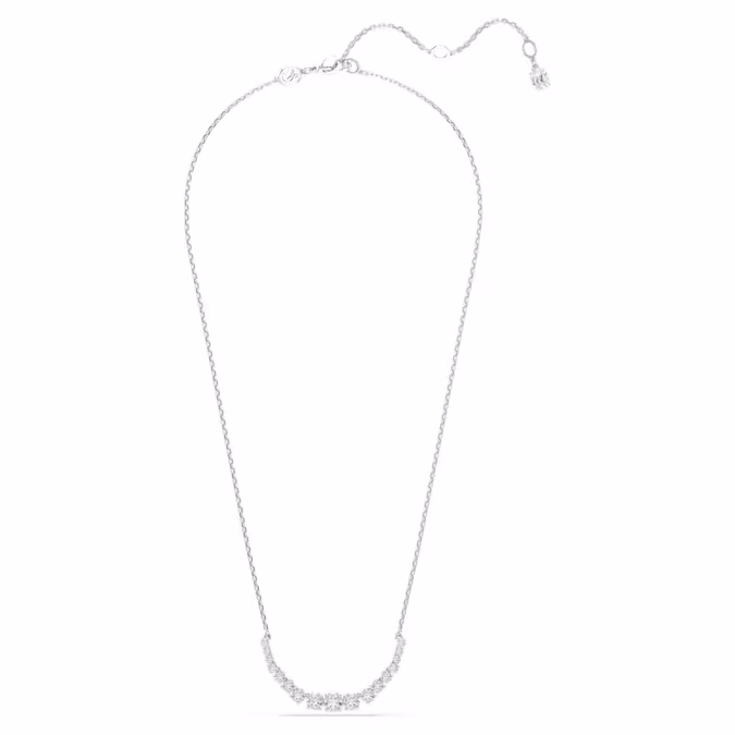Ощутите чистую элегантность с этим сияющим ожерельем Matrix. Это украшение с родиевым покрытием представляет собой изящную цепочку, украшенную градиентом из круглых фианитов Swarovski, каждый из которых имеет особую грань для прекрасного отражения света. Подчеркните его роскошный вид, дополнив его парой подходящих серег или браслетом.