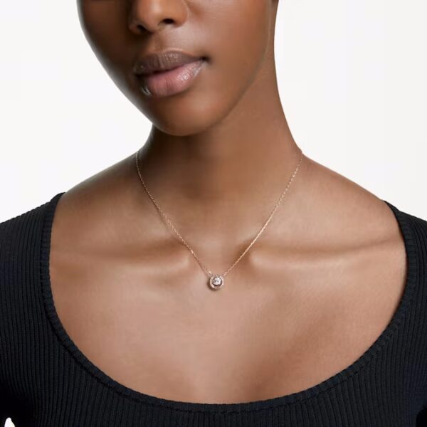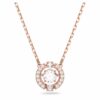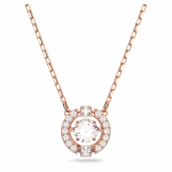 Это ожерелье с покрытием из розового золота, выполненное в новом дизайне «танцующий кристалл», представляет собой круглый камень, плавающий внутри трехмерной клетки, украшенной кристальным паве. Это незаменимое дополнение к любой шкатулке для украшений, которое придаст вашему повседневному стилю игривый блеск.
