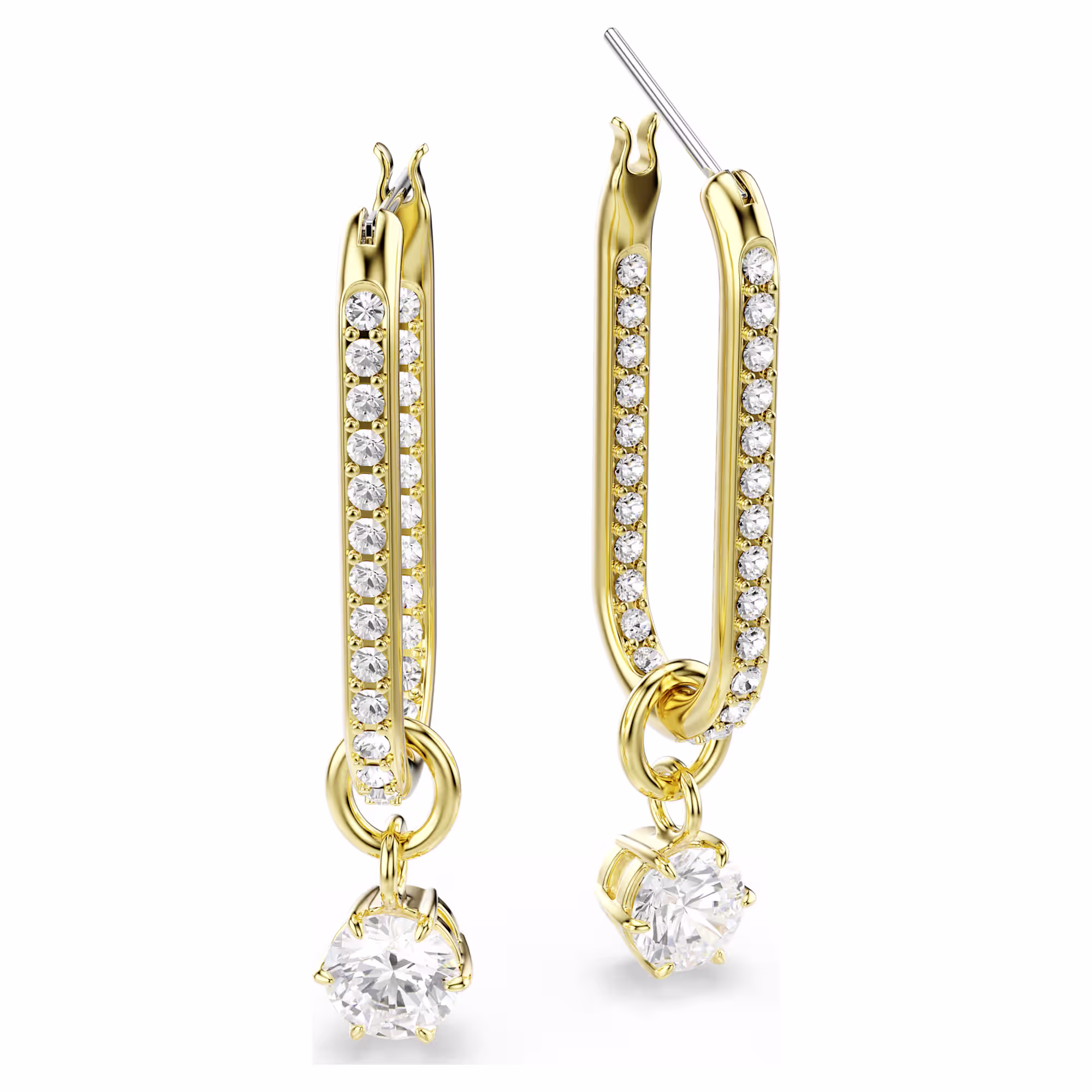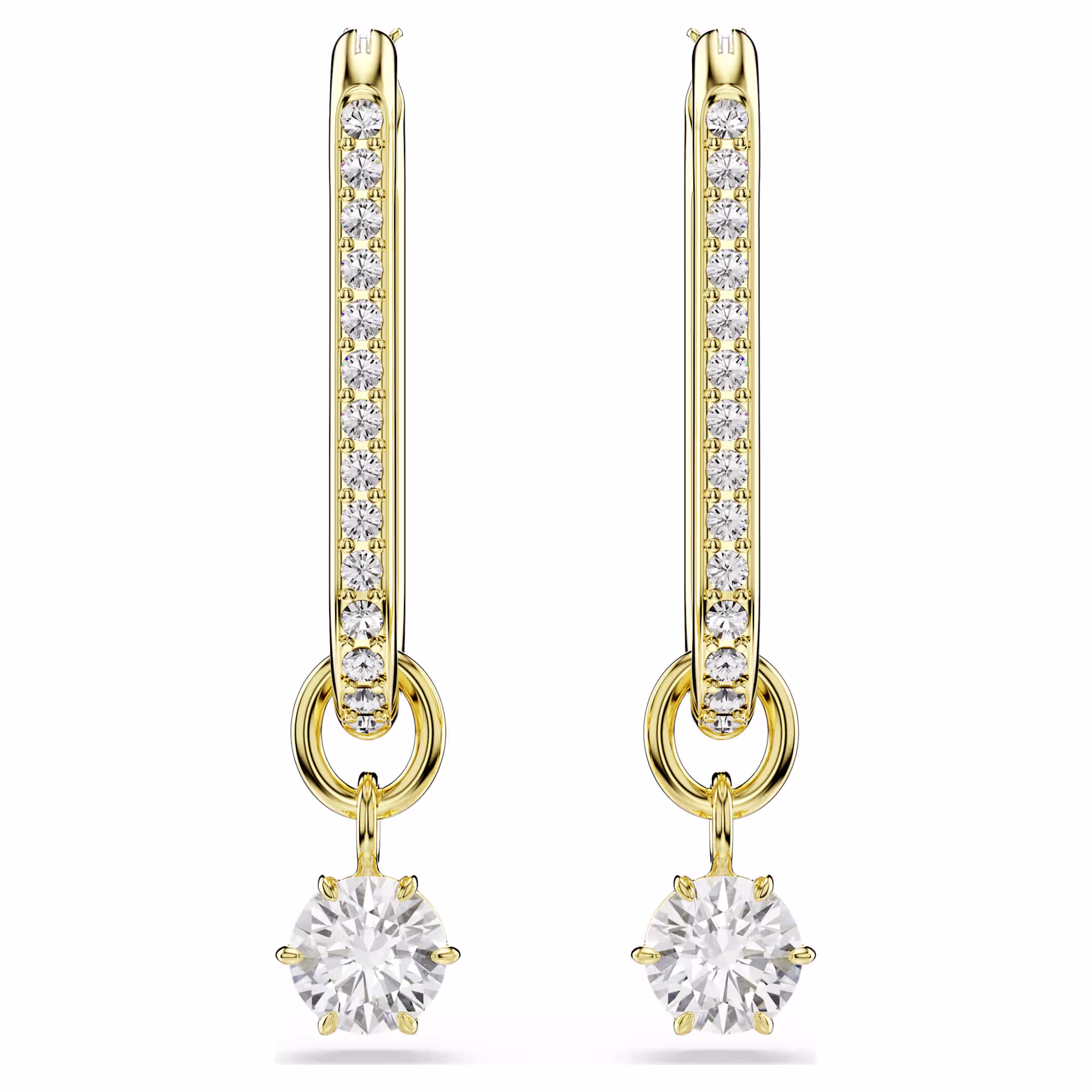 Украсьте каждый день сиянием этих золотистых сережек. Каждое удлиненное кольцо украшено мерцающим паве, а под ним изящно свисает закрепленный кристалл циркония Swarovski. Чудесная альтернатива классическому стилю колец, вдохновленная изысканной элегантностью коллекции Constella.