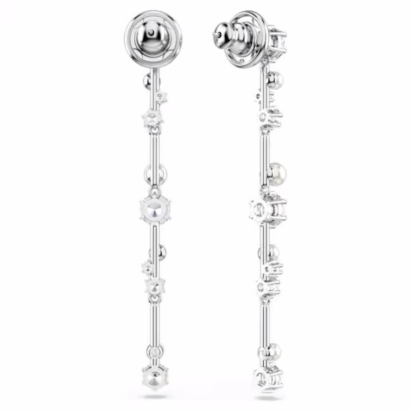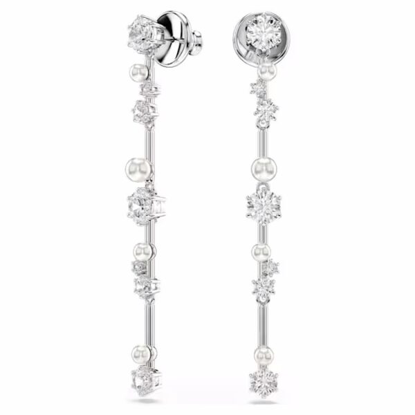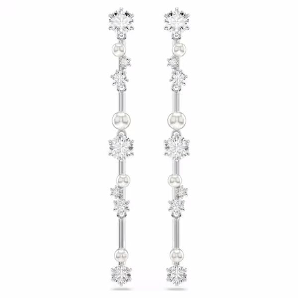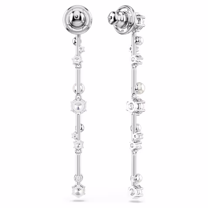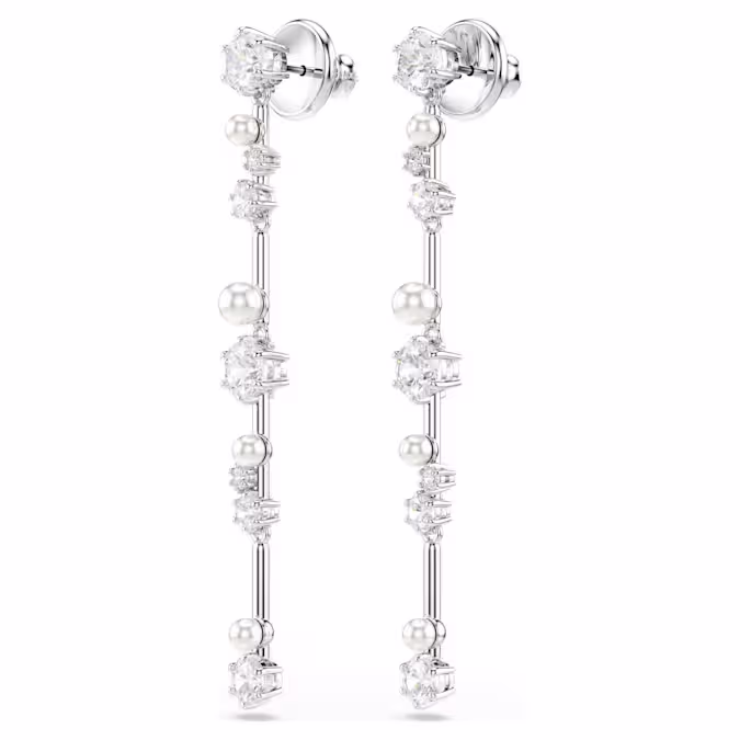 Эти свисающие серьги Constella, словно следы звездной пыли, наполнены магией и светом. Каждое изделие покрыто родием и украшено скоплением разноразмерных цирконий Swarovski и кристальных жемчужин Swarovski, которые, кажется, парят среди металлических прутьев украшения. Сенсационное дополнение к любому наряду, которое усилит ваше космическое сияние.