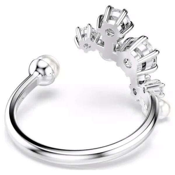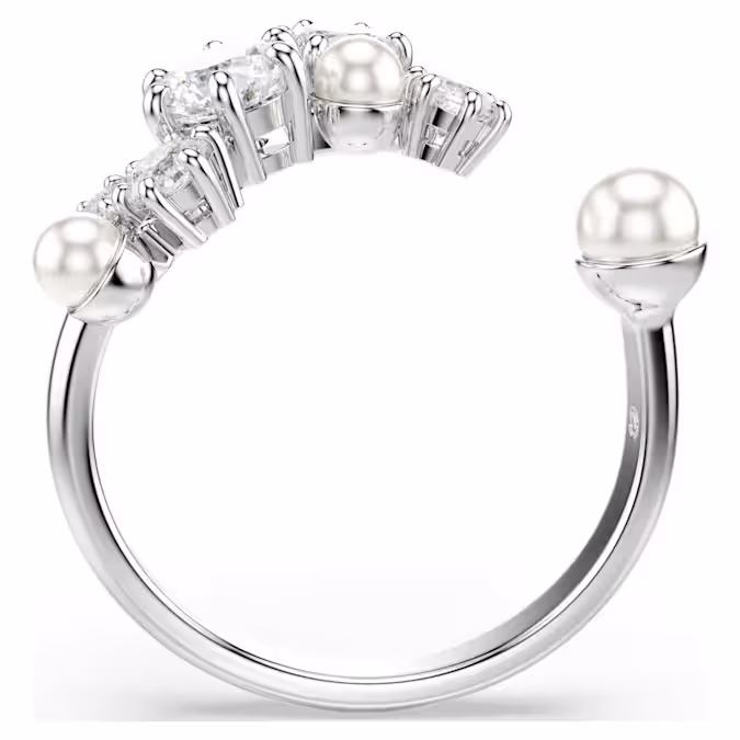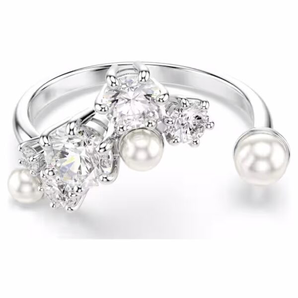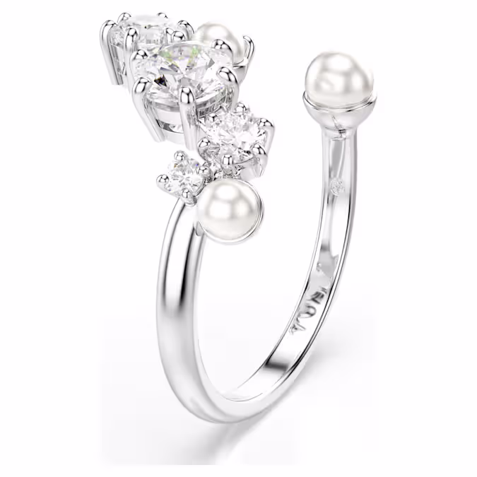 Держите звезды в своих руках с этим сверкающим кольцом Constella. Открытый дизайн покрыт родием и украшен круглыми цирконами Swarovski и кристальными жемчужинами Swarovski самых разных размеров. Это видение перенесет ваш стиль в ночное небо и придаст вам космическое сияние для любого случая.