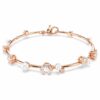 Ощутите звездное сияние в этом сверкающем браслете Constella. Вдохновленный чудом ночного неба, дизайн с покрытием оттенка розового золота отличается скоплением разноразмерных цирконий Swarovski и кристальных жемчужин Swarovski, которые, кажется, парят среди металлических прутьев украшения. Простая в использовании застежка-карабин обеспечивает удобное ношение на запястье. Сочетайте его с другими украшениями Constella, чтобы создать свою собственную космическую ауру.