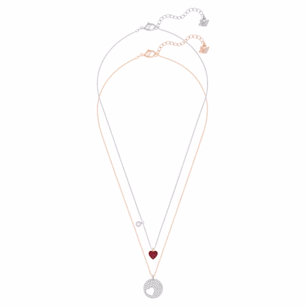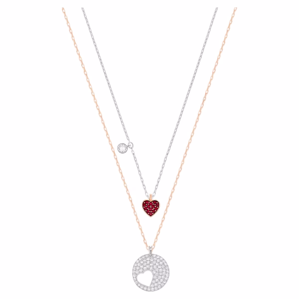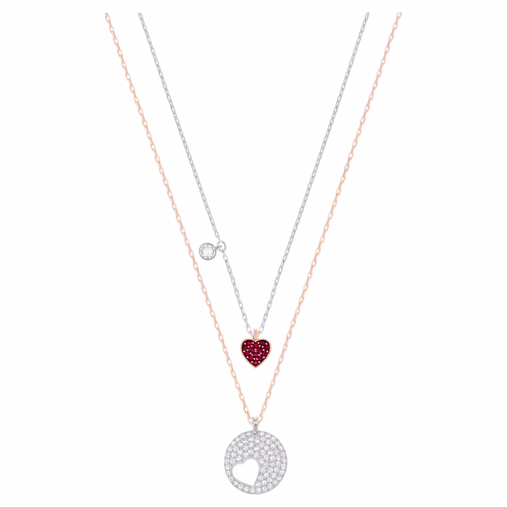 Носите этот набор из двух кулонов вместе для создания модного многослойного образа или подарите один из них любимому человеку как символ вашей уникальной связи. Один кулон украшен изящным сердечком, инкрустированным красными кристаллами, а другой — кругом из прозрачных кристаллов с вырезом в форме сердца. Оба изделия сочетают в себе разные металлические покрытия и станут идеальным подарком на День святого Валентина.