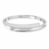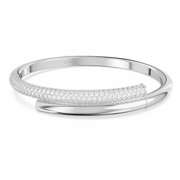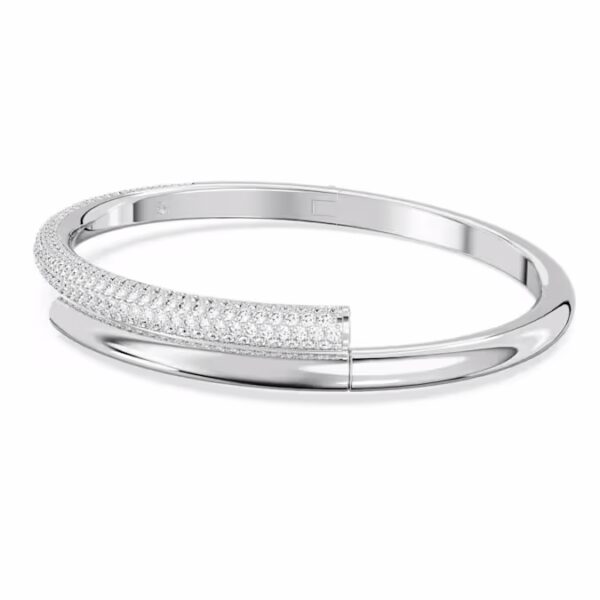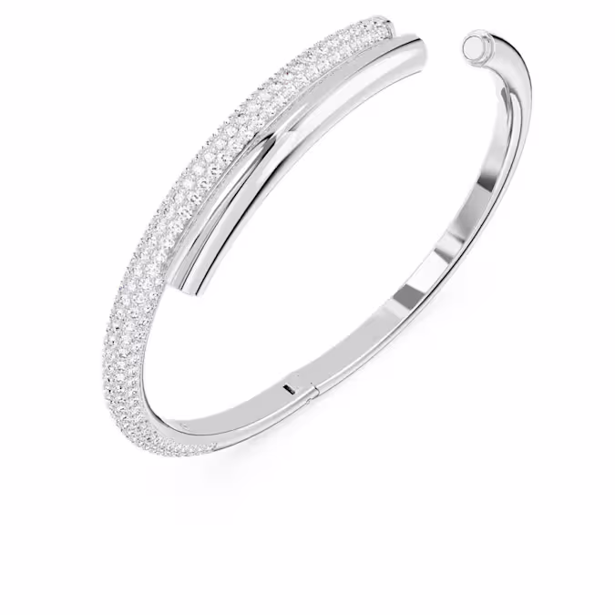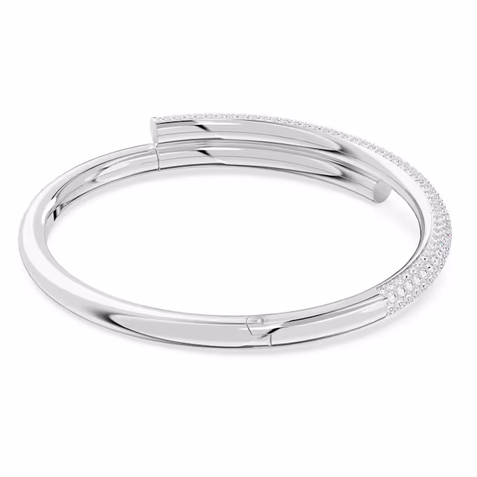 Этот браслет-кроссовер с гладким кольцом вокруг запястья производит максимальное впечатление. Трубчатый дизайн прекрасно сочетает в себе классический и современный стили, а полоса с родиевым покрытием наполовину украшена сплошным прозрачным паве. Для безупречного завершения браслет оснащен скрытой магнитной застежкой. Роскошное изделие, которое улучшит любой ваш стиль.