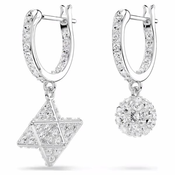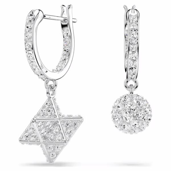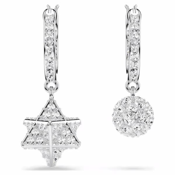 Асимметричный дизайн, Круглая огранка, Звезда и сфера, Белый, Родиевое покрытие
