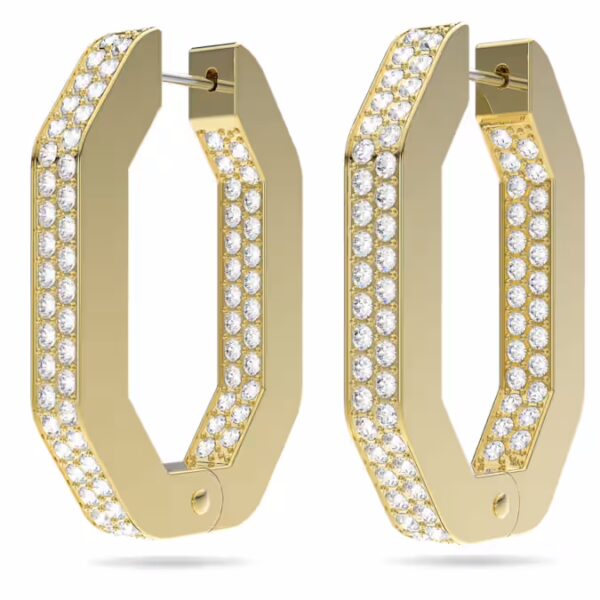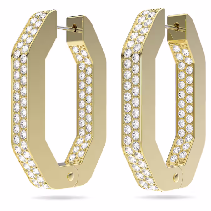 Сделайте шикарное заявление с этими геометрическими серьгами-кольцами. Их структурированный восьмиугольный дизайн создает смелый контраст со сложной отделкой паве. Эта пара дополнена позолоченной оправой, готовой к комбинированию с другими металлами из семейства Dextera для создания образа в индустриальном стиле.