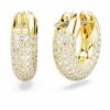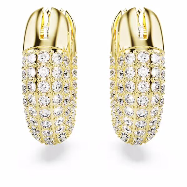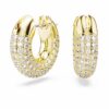 Современная интерпретация классических сережек-колец, эта бесполая пара добавит динамичный штрих к любому наряду. Ее скульптурный дизайн прославляет культовую технику Swarovski Pavé с блестящими фольгированными кристаллами на гладкой позолоченной оправе. Не только для дневного времени, носите этот эффектный дуэт и с вечерними образами. Эти серьги являются частью Dextera Family, разработанной для Collection III.
