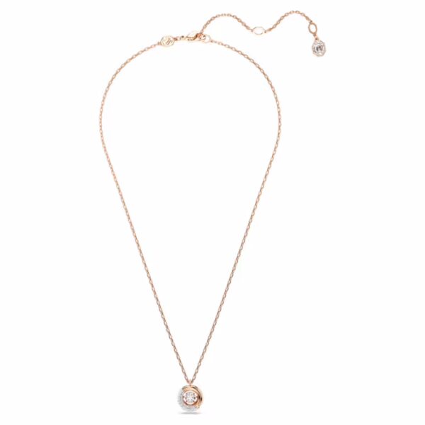Эта пленительная подвеска Dextera демонстрирует красоту в движении. Подвешенная на изящной цепочке с застежкой-карабином, розово-золотая конструкция имеет центральный обруч, наполовину инкрустированный паве из прозрачных кристаллов, и танцующий цирконий Swarovski, размещенный посередине. Сочетайте с соответствующим набором серег для радостно экстравагантного образа.