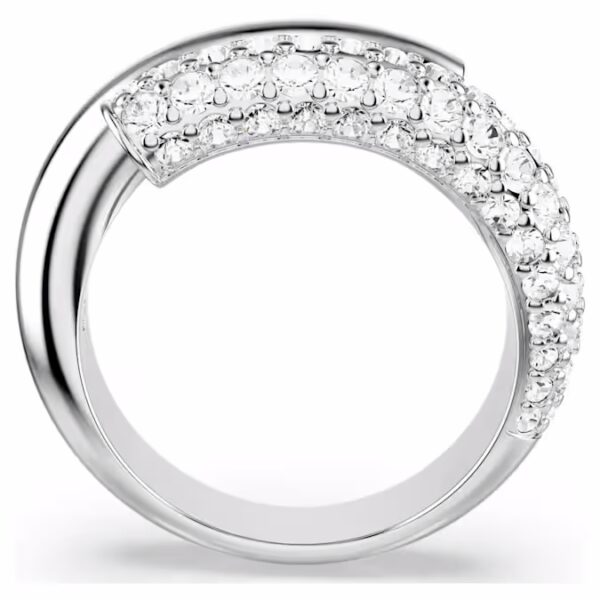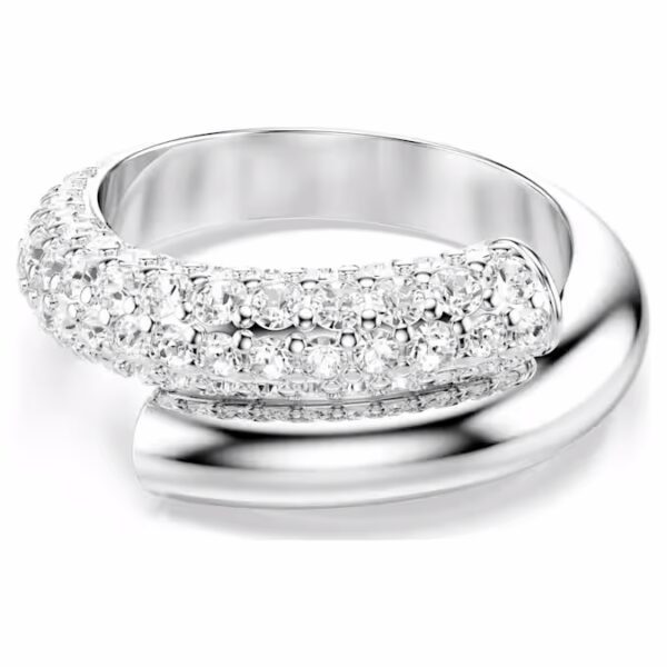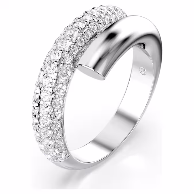 Красота этого технически изысканного кольца Dextera сияет в каждой детали. Трубчатый дизайн покрыт родием и наполовину инкрустирован ослепительным паве из прозрачных кристаллов. Сочетайте с контрастным золотым кольцом, чтобы создать образ, бросающий вызов условностям.