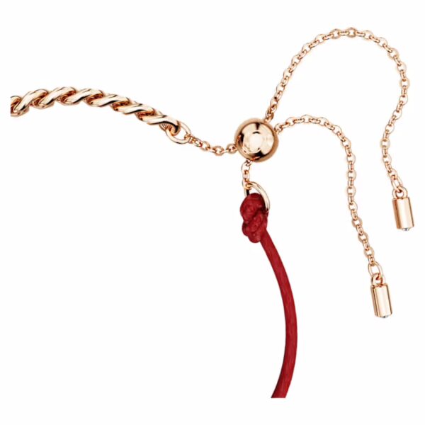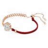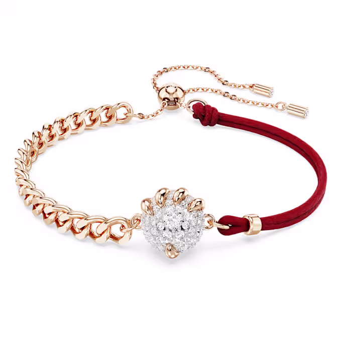 Этот вдохновенный браслет, созданный для года Дракона, является прекрасным примером мастерства Swarovski. Дизайн с покрытием из розового золота имеет центральный коготь дракона, который крепко держит счастливую монету, украшенную паве из прозрачных кристаллов. Вокруг запястья браслет имеет связанную цепочку с одной стороны и красную ткань с другой. Яркое и энергичное, это украшение станет идеальным подарком для любимого человека.