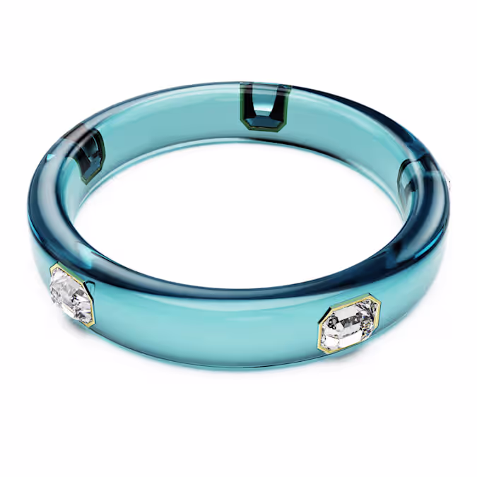 Будьте самой яркой в ​​этом браслете конфетного цвета от семейства Dulcis. Восхитительный дизайн отличается яркой синей полосой, вставленной пятью восьмиугольными кристаллами в позолоченной оправе. Игривый способ превратить свой стиль из обычного в изумительный.