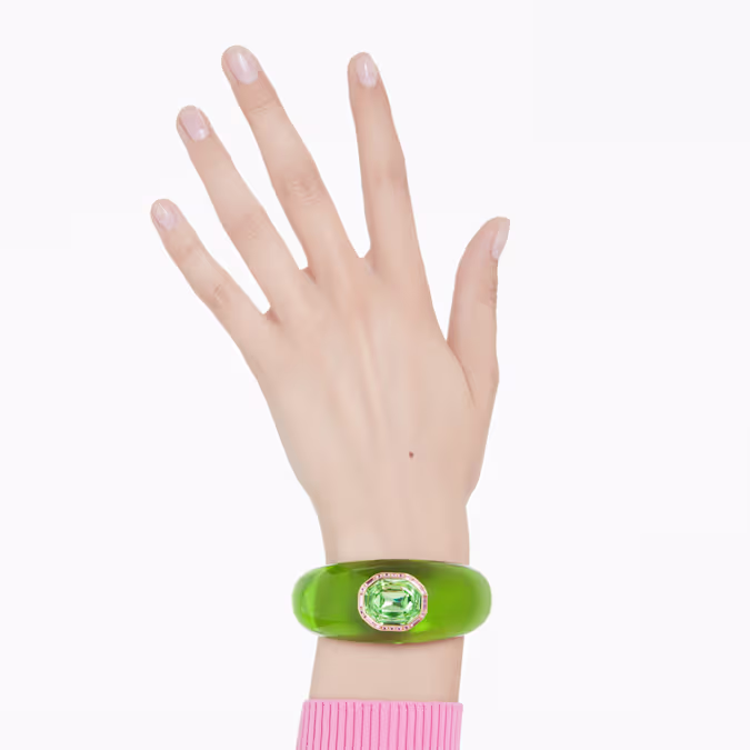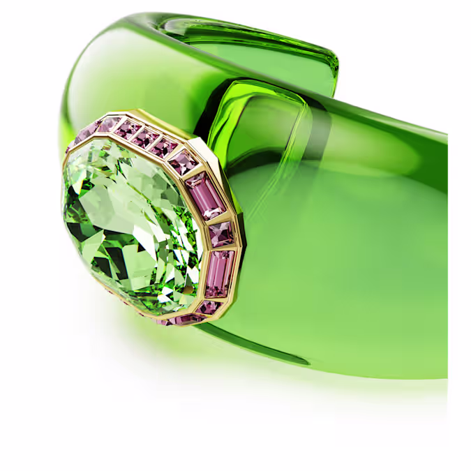 Этот браслет-манжета Dulcis с его энергичными зелеными тонами был создан для игривых дней. Дизайн, вдохновленный конфетами, представляет собой открытую зеленую полосу с центральным восьмиугольным кристаллом зеленого цвета, окруженным розовым паве в позолоченной оправе. Привлекает внимание само по себе или становится красочным центральным элементом, если носить его вместе с подходящими украшениями из той же семьи.