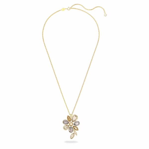 Это экзотическое ожерелье, напоминающее красивый цветок, отражает теплые оттенки африканского пейзажа. Каждый лепесток изготовлен из ограненных коричневых и золотых кристаллов, помещенных в золотистую оправу для непревзойденного блеска. Это ожерелье с длинной цепочкой станет идеальным украшением, которое добавит вашему стилю нотку шика и непринужденности.