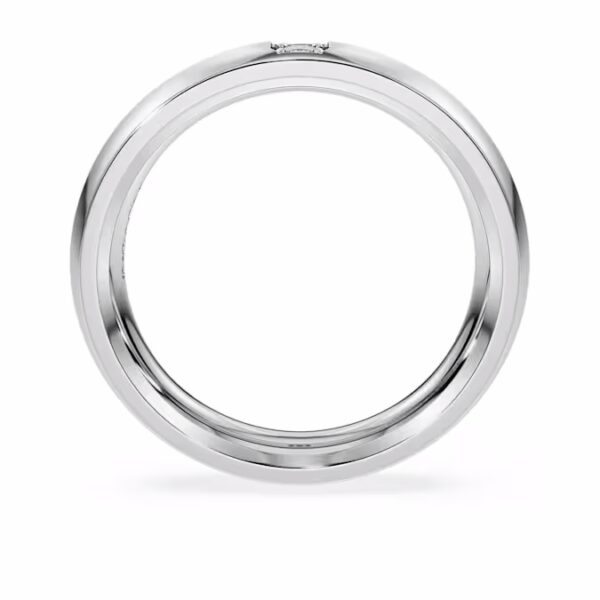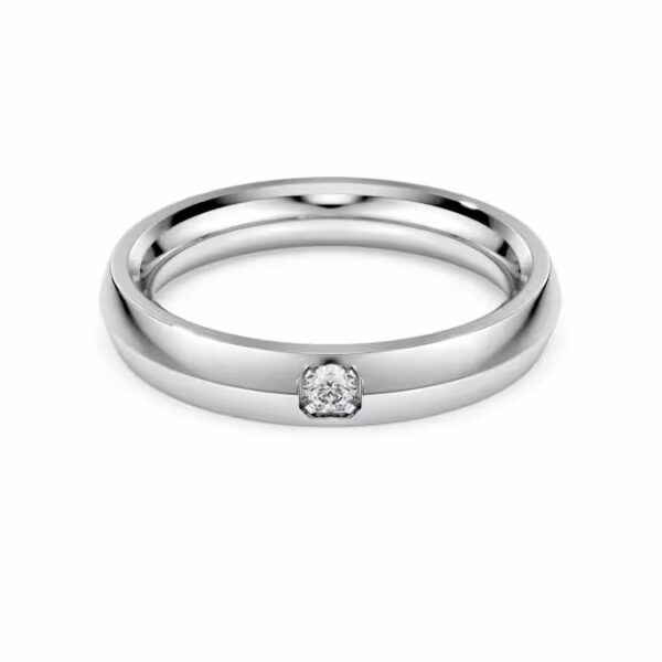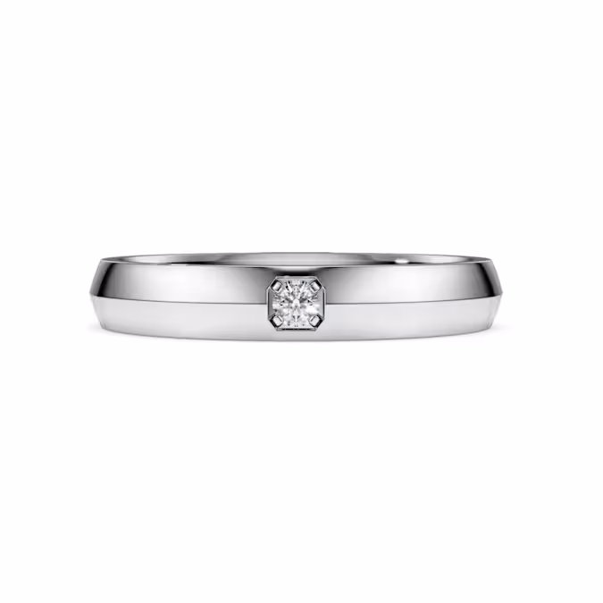 Это кольцо Eternity, символизирующее вечную приверженность, создано для мужского стиля, неподвластного времени. Граненый ободок выполнен из 14-каратного белого золота и украшен одним выращенным в лаборатории бриллиантом общим весом 0,05 карата. Выражая высокий блеск и изысканность, это идеальное украшение для мужского обручального кольца или особого подарка. Это ювелирное изделие сертифицировано IGI (Международным геммологическим институтом) и является частью коллекции Eternity.