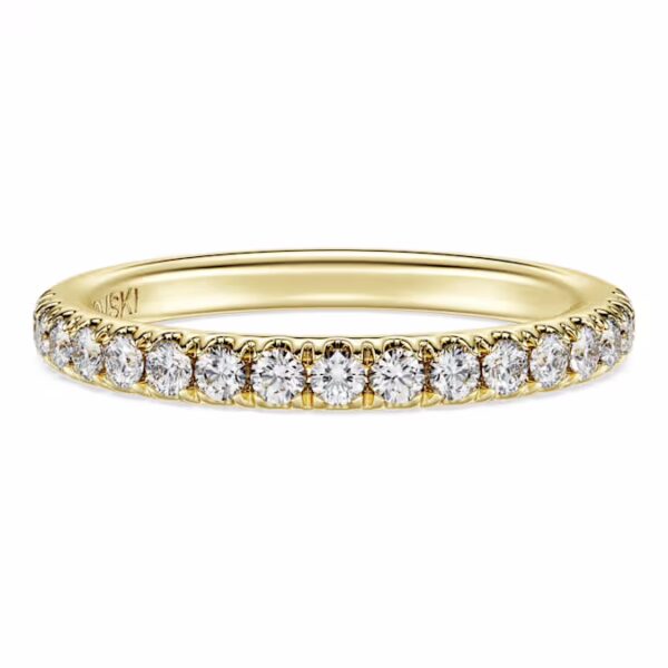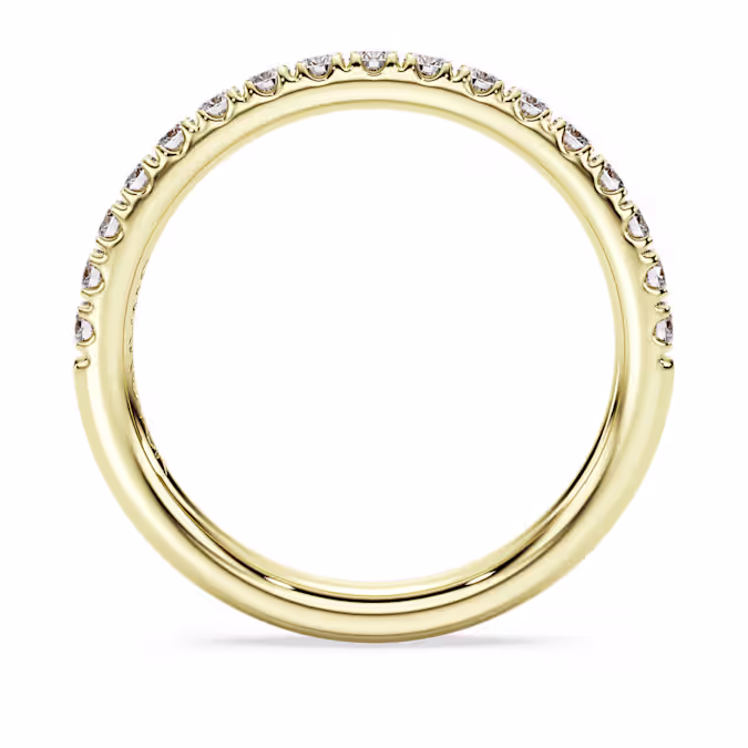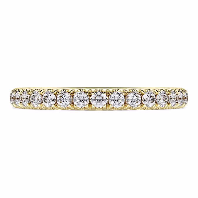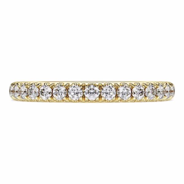 Для сверкающего дополнения к вашему экспрессивному стилю это кольцо Eternity станет идеальным выбором. Верхняя часть 14-каратного желтого золота украшена рядом круглых лабораторных бриллиантов в зубчатой оправе общим весом 0,4 карата. Сочетайте с соответствующим кольцом-солитером, чтобы наполнить ваш стиль светом и роскошью. Это ювелирное украшение сертифицировано IGI (Международным геммологическим институтом) и является частью коллекции Eternity.