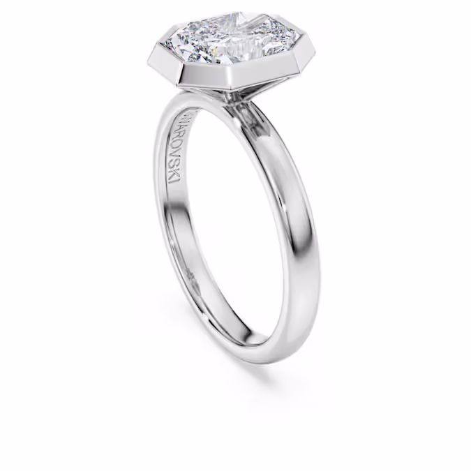 Это кольцо-солитер, передающее фирменную восьмиугольную форму Swarovski, сияет изысканностью. Кольцо из 14-каратного белого золота украшено одним выращенным в лаборатории бриллиантом общим весом 2,0 карата, помещенным в граненую оправу. Точная огранка для максимального сияния, это кольцо — прекрасный выбор для помолвки. Это ювелирное изделие сертифицировано IGI (Международным геммологическим институтом) и является частью коллекции Eternity.