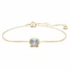 Этот браслет из 14-каратного желтого золота идеально подходит для ежедневного ношения, он наполнен вневременной элегантностью. Центральный мотив выполнен в фирменной форме восьмиугольника Swarovski и включает в себя один выращенный в лаборатории бриллиант общим весом 0,5 карата, помещенный в граненую оправу. Изящная цепочка дополнена застежкой-карабином и регулируемыми оправами для удобной посадки. Это украшение сертифицировано IGI (Международным геммологическим институтом) и является частью коллекции Eternity.