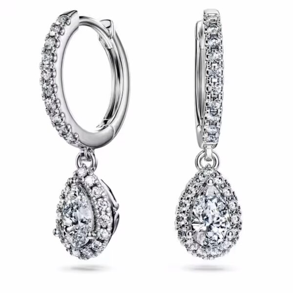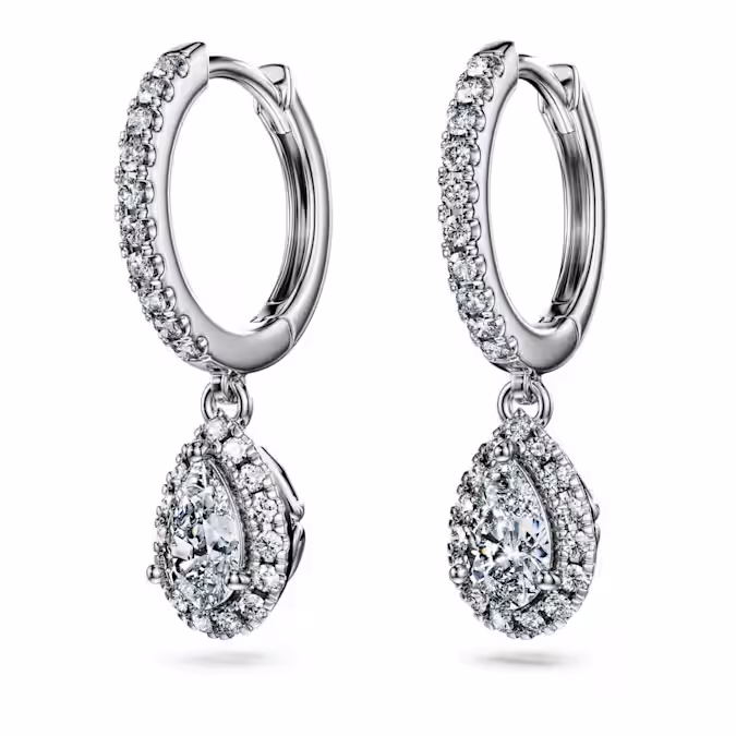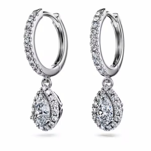 Благодаря своей драматической игре света эти изысканные серьги-проколы навсегда выделятся из толпы. С лицевой стороны каждое кольцо из 14-каратного белого золота украшено круглыми лабораторно выращенными бриллиантами, а внизу висит грушевидный лабораторно выращенный бриллиант, окруженный сверкающим ореолом. Эти вневременные серьги общим весом 1,25 карата станут сенсационным выбором подарка. Это ювелирное изделие сертифицировано IGI (Международным геммологическим институтом) и является частью коллекции Eternity.
