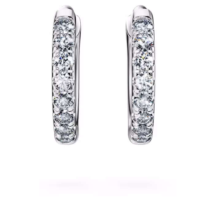 Эти сверкающие серьги-кольца выводят классический стиль колец на новый уровень роскоши. С лицевой стороны изделия из 14-каратного белого золота украшены паве из круглых лабораторно выращенных бриллиантов общим весом 0,1 карата. Сенсационный способ озарить свой образ. Это украшение сертифицировано IGI (Международным геммологическим институтом) и является частью коллекции Eternity.
