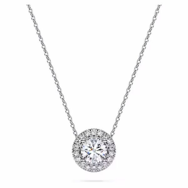 Влюбитесь в непринужденный шик этой роскошной подвески Eternity. Изделие из 14-каратного белого золота носится на изящной цепочке и имеет круглый лабораторно выращенный бриллиант в зубчатой оправе, окруженный ореолом из более мелких лабораторно выращенных бриллиантов — все общим весом 0,59 карата. Сочетайте его с подходящими гвоздиками-ореолами для изысканного сияния. Это украшение сертифицировано IGI (Международным геммологическим институтом) и является частью коллекции Eternity.