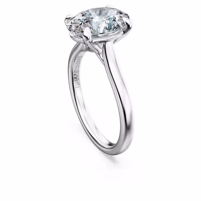 Поднимите свой стиль Swarovski на новый уровень с этим роскошным кольцом Eternity. Дизайн из 14-каратного белого золота — идеальный выбор для помолвки, с крупным лабораторно выращенным бриллиантом в крапановой оправе общим весом 3,0 карата в красивой овальной огранке. Это эффектное украшение можно сочетать с соответствующим кольцом-полоской. Это ювелирное изделие сертифицировано IGI (Международным геммологическим институтом) и является частью коллекции Eternity.