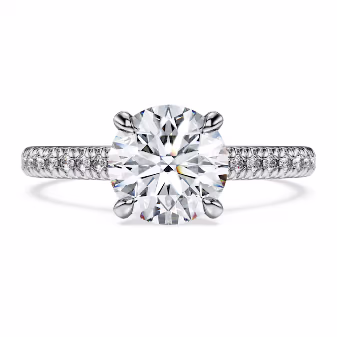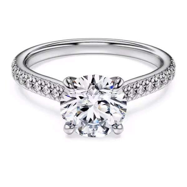 Каждая деталь этого сияющего кольца Eternity была создана, чтобы ловить свет. Дизайн из 14-каратного белого золота дополнен небольшими лабораторно выращенными бриллиантами, а круглый лабораторно выращенный бриллиант в зубчатой оправе находится в центре — все это общим весом 1,7 карата. Элегантное украшение бесконечной красоты, которое станет сенсационным выбором для помолвки. Это ювелирное изделие сертифицировано IGI (Международным геммологическим институтом) и является частью коллекции Eternity.