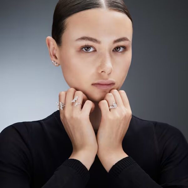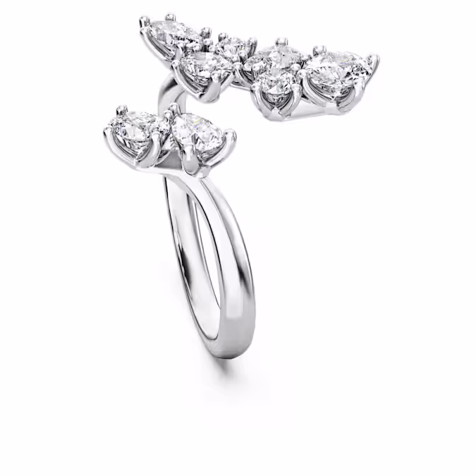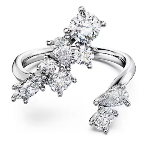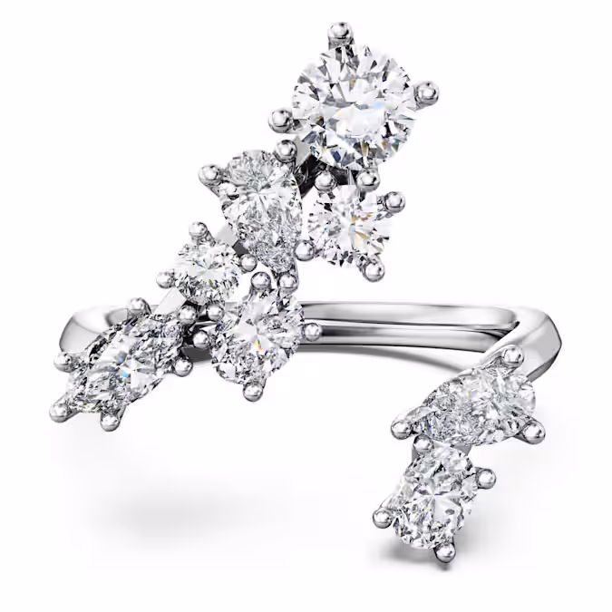Это асимметричное кольцо, мерцающее, как след звездной пыли, наполнено драматизмом, притягивающим свет. Дизайн из 14-каратного белого золота имеет спиральную полосу, которая украшена выращенными в лаборатории бриллиантами различных причудливых форм. Ощутите магию космоса, сочетая это кольцо с ожерельем или серьгами из того же семейства. Это украшение является частью коллекции Galaxy, созданной Джованной Энгельберт. Выращенные в лаборатории бриллианты в коллекции Galaxy оценены и сертифицированы IGI (Международным геммологическим институтом) в соответствии с 4C качества бриллиантов.