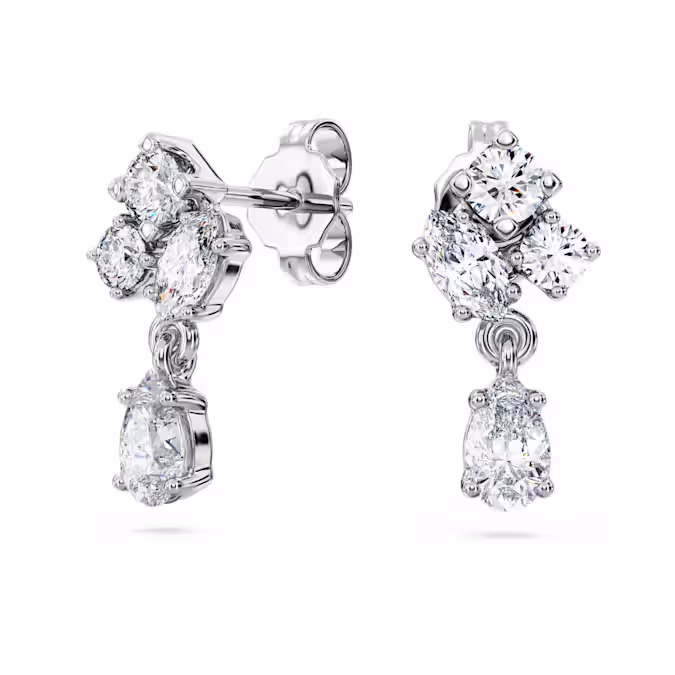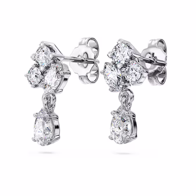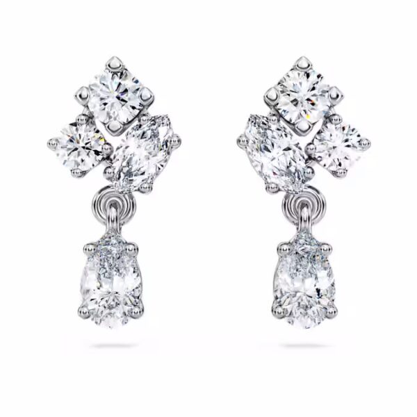 Примите образ изысканной элегантности с этими притягивающими свет серьгами. Каждое изделие из 14-каратного белого золота ослепляет четырьмя выращенными в лаборатории бриллиантами различных причудливых форм. Камни искусно расположены для эффекта кластера, с грушевидным камнем, который изящно висит ниже. Потрясающая пара серег, которые можно носить отдельно или с соответствующим ожерельем. Это украшение сертифицировано IGI (Международным геммологическим институтом) и является частью коллекции Galaxy, созданной Джованной Энгельберт.
